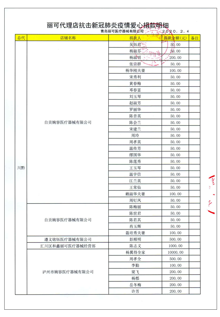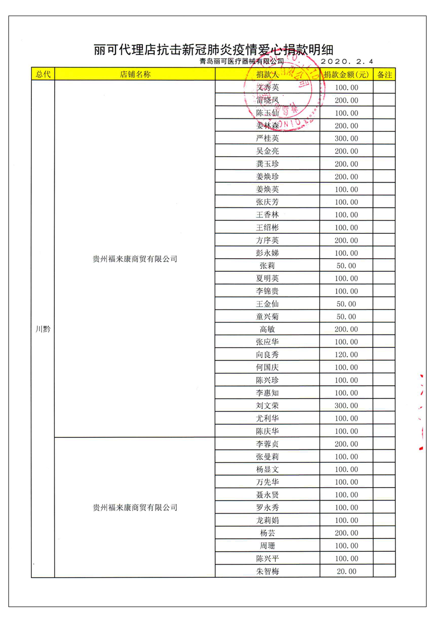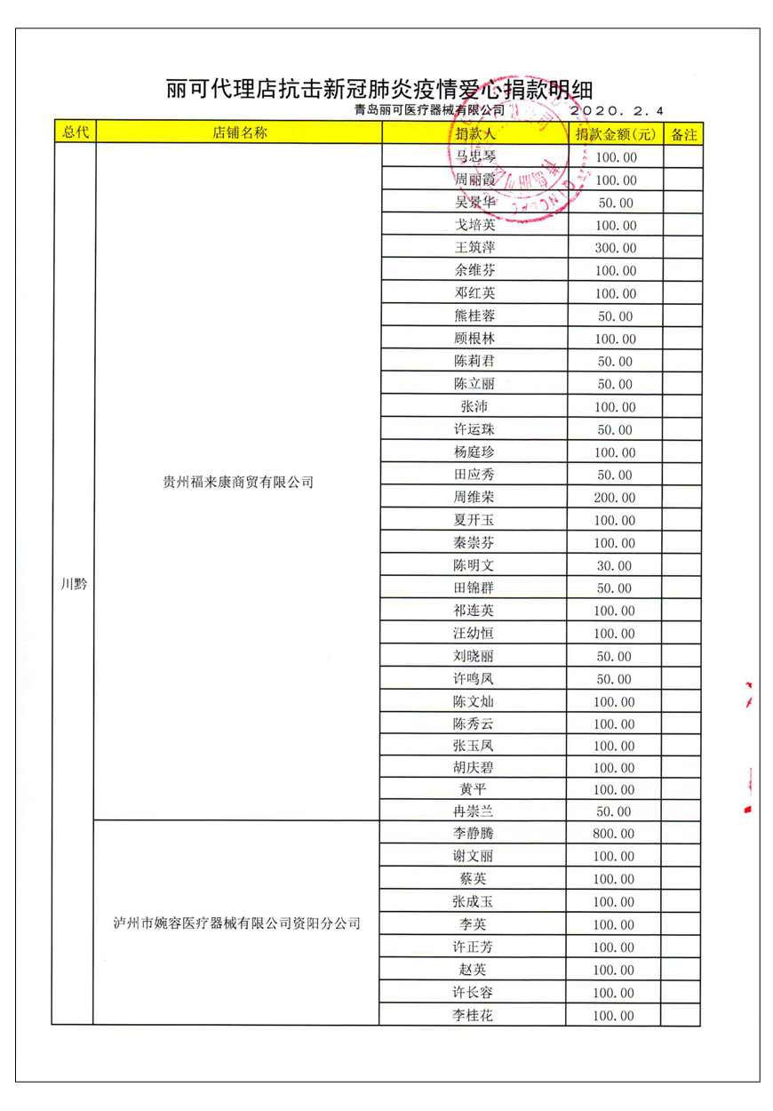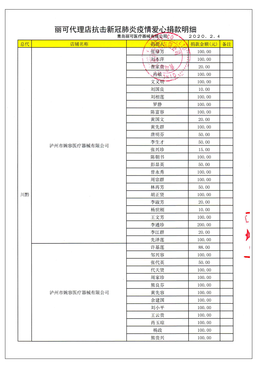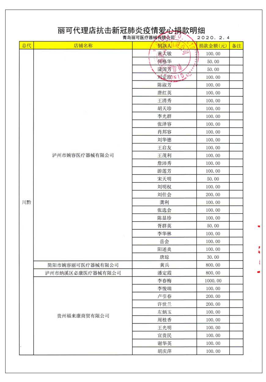 越來(lái)越多的人在麗可的號(hào)召下加入到愛(ài)心捐贈(zèng)的隊(duì)伍中來(lái),匯成一股愛(ài)心與力量的強(qiáng)大洪流。2月4日,青島麗可醫(yī)療器械有限公司攜手全國(guó)經(jīng)銷商以及熱心顧客通過(guò)青島市紅十字會(huì)捐款人民幣72萬(wàn)余元,助力湖北省武漢市的疫情防控工作。